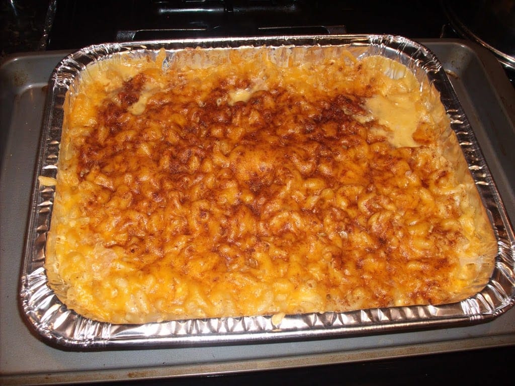 Cook the macaroni and be sure to salt the water (this is the only time you get to season the pasta). Melt the velvetta with the milk on the stove or in the microwave. Once the noodles are cooked, drain and rinse under cold water. Put the pasta into a buttered pan and mix the the cheese sauce, a few tablespoons of butter, pepper (to taste), and about half the bag of the cheddar cheese. Top with the rest of the cheddar and sprinkle with paprika. Bake in a 375 degree oven for about 25 – 30 minutes.